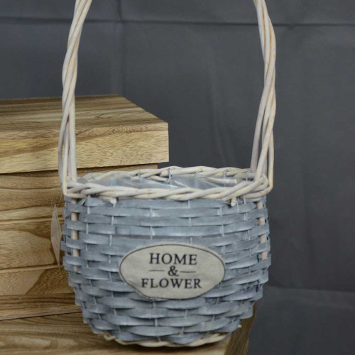 Cistell alt amb nansa i en color gris.